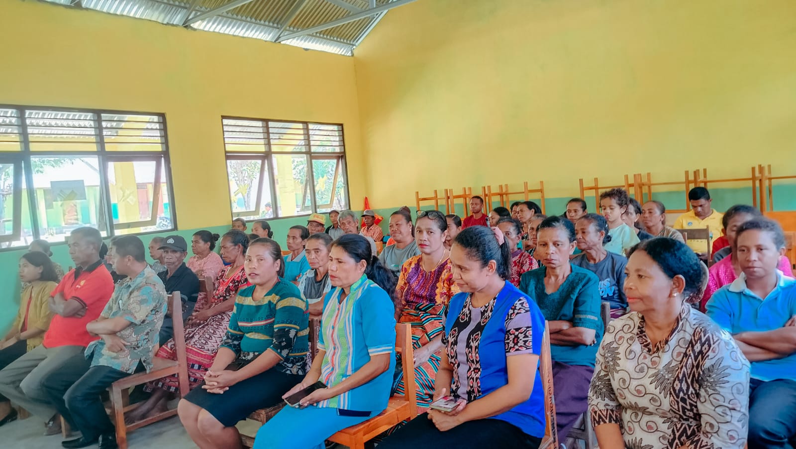 Foto 2: Orang tua siswa mengikuti kegiatan sosialisasi dengan antusias di ruang kelas utama SMP Negeri Oekopa